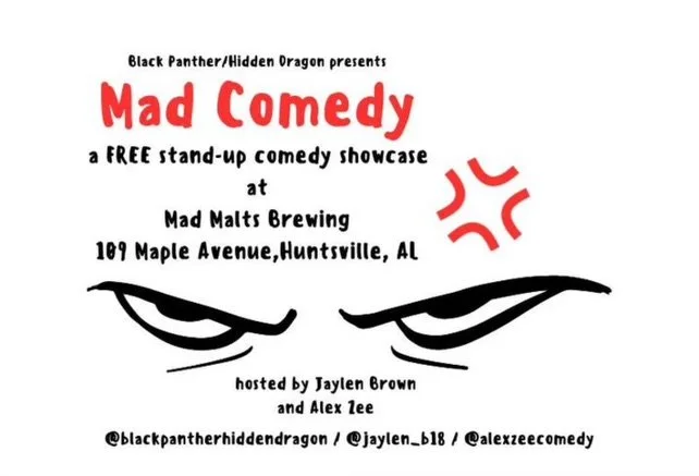 Mad Comedy - Huntsville Friday, November 24, 2023 8:00 PM 10:30 PM Mad Malts Brewing 109 Northwest Maple Avenue Huntsville, AL, 35801 United States (map) Google Calendar ICS